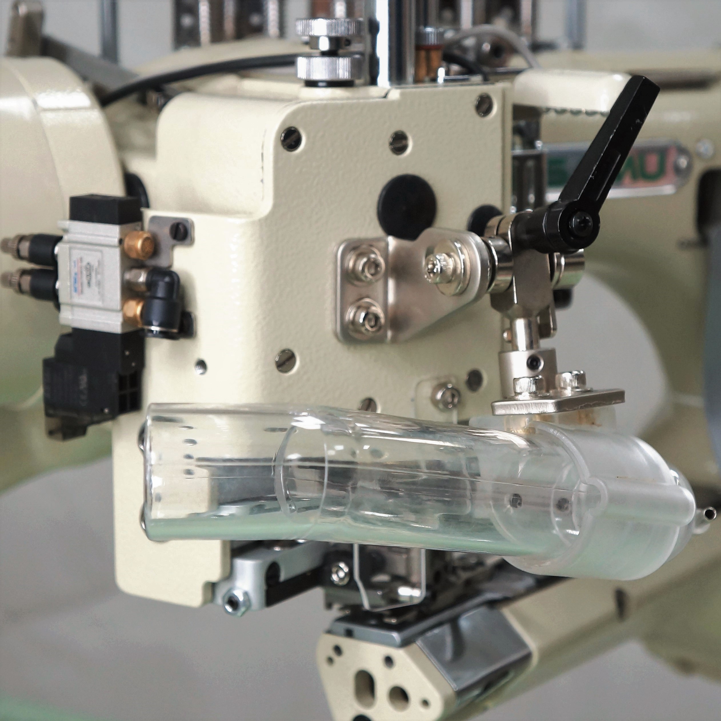 | MU-62DR 4-needle 6-thread feed-off-the-arm flatseamer interlock sewing machine with external feeding amount adjustment mechanism | ||
